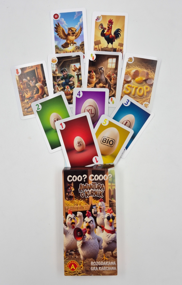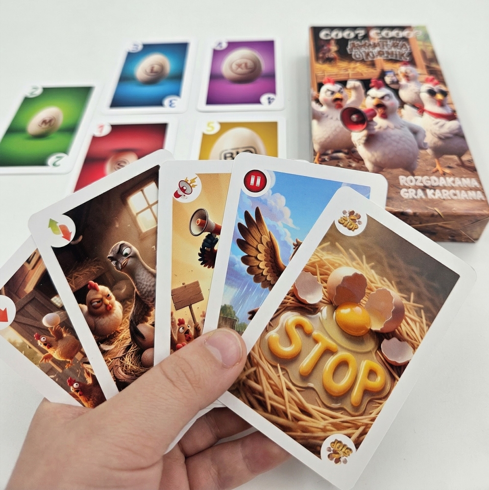 Awantura o kurnik to dynamiczna gra karciana, która wciąga od pierwszej rundy i błyskawicznie zamienia rodzinne spotkanie w pełną śmiechu i emocji rozgrywkę.