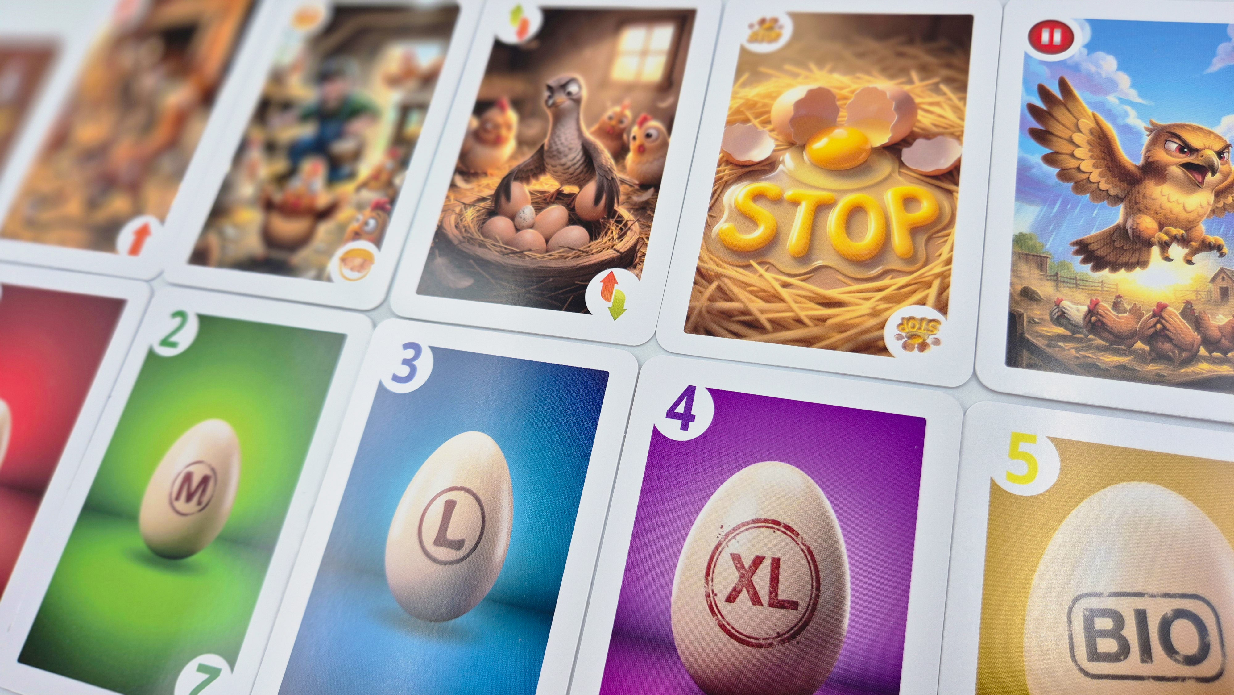 - KUKUŁKA – zamieniasz swoje jajo na lepsze, zamieniasz dowolna kartę ze swojego koszyka, z wyżej punktowaną kartą przeciwnika