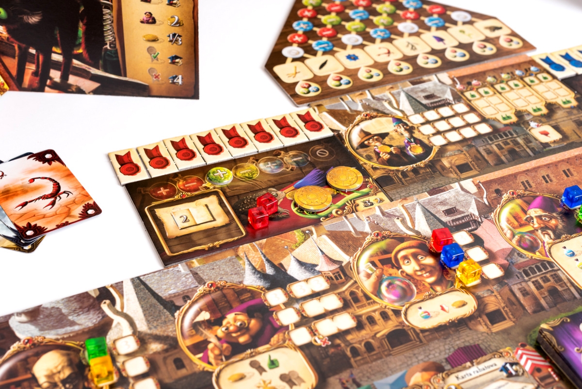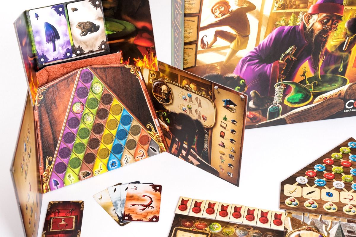 Od dwóch do czterech graczy wciela się w rywalizujących alchemików chcących odkryć sekrety tej tajemnej sztuki. Punkty można zdobywać na różne sposoby, ale najwięcej otrzymuje się za publikację teorii - prawidłowych teorii, warto dodać. I w tym leży problem.