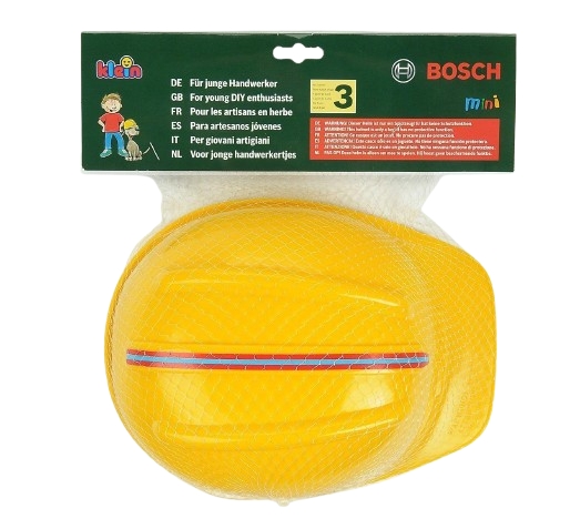 Kask budowlany Klein powstały na licencji Bosch, dlatego też są wierną kopią prawdziwego kasku produkowanego przez tę firmę. Kask budowlany z daszkiem jest w kolorze żółtym i został na czole ozdobiony logiem Bosch, a przez cały kask na górze ozdabia go dodatkowo czerwono-niebieski pasek. Kask posiada regulację, dzięki czemu będzie pasował dzieciom w różnym wieku. Zabawki Klein umożliwiają dzieciom naśladowanie rodziców podczas codziennych czynności domowych w sposób realistyczny i bezpieczny, zapewniając swobodną zabawę i naukę. Kask budowlany lub ochronny może być doskonałym dodatkiem do innych zestawów z serii Bosch od Klein. Zarówno do pracy i zabawy z wiertarką, piłą łańcuchową, młotem pneumatycznym czy przy warsztacie każdy mały majsterkowicz powinien mieć na sobie kask ochronny. Z pewnością przypadnie on do gustu wszystkim małym majsterkowiczom.
