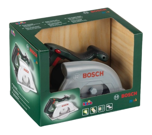 Piła jest w kolorze ciemno-zielonym z czarną wygodną rączką i uchwytem, czerwonym przyciskiem spustu z imitacją blokady, srebrną ochronną obudową i tarczą piły i czerwonym charakterystycznym logo firmy Bosch. Piła ręczna posiada dwa wygodnie wyprofilowane uchwyty co zapewnia dobre utrzymanie zabawki w dziecięcych dłoniach. Zabawka podczas pracy wydaje mechaniczny efekt dźwiękowy naśladujący dźwięk pracy silnika prawdziwej piły, a także dodatkowo przy dociśnięciu ostrza do podłoża, dioda umieszczona na tarczy daje efekt świetlny imitujący iskry ciętego materiału. Wszystkie elementy zestawu są wykonane z plastiku, pozbawione ostrych krawędzi i całkowicie bezpieczne dla dziecka. Bawiąc się piłą ręczną dzieci już od najmłodszych lat w bezpieczny sposób będą mogły wcielić się w rolę majsterkowicza, zapewniając sobie realistyczne doświadczenie korzystania z tego narzędzia. Zabawka umożliwia maluchom kreatywną zabawę i doskonalenie umiejętności manualnych. Dzieci uwielbiają naśladować rodziców wykonujących codzienne czynności domowe lub w nich uczestniczyć, jednak nie zawsze jest to możliwe ze względów bezpieczeństwa, a dzięki tej całkowicie bezpiecznej dla dzieci, zabawkowej pile ręcznej Bosch każdy mały majsterkowicz może bezpiecznie robić to, co jego opiekunowie. Zabawka wymaga użycia baterii, które nie są zawarte w zestawie.