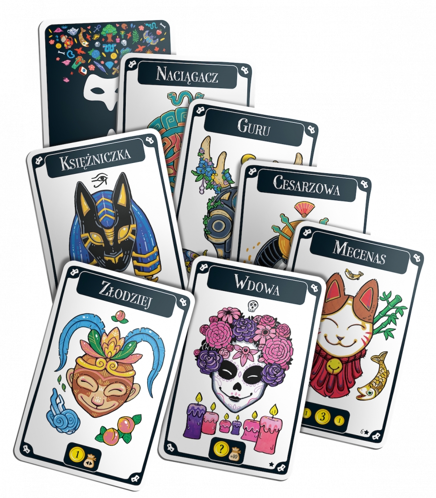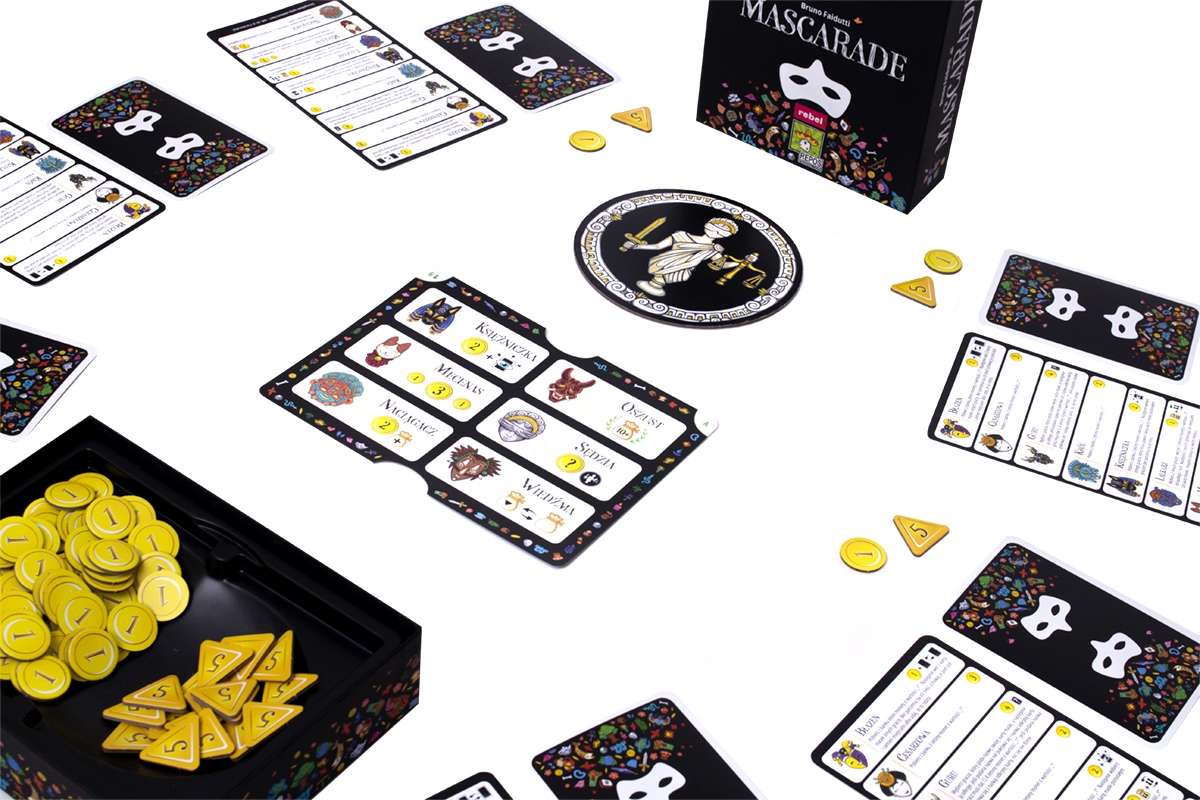 Witajcie na maskaradzie, gdzie wygląd często bywa zwodniczy, a uczestnicy nie zawsze są tymi, za których się podają! We właściwym momencie przywdziejcie odpowiednie przebranie, użyjcie związanej z nim mocy i zgromadźcie fortunę, dzięki której zwyciężycie. To zadanie proste tylko z pozoru, maski bowiem zmieniają właścicieli tak często, że nigdy nie mamy pewności, czyja twarz kryje się pod spodem!