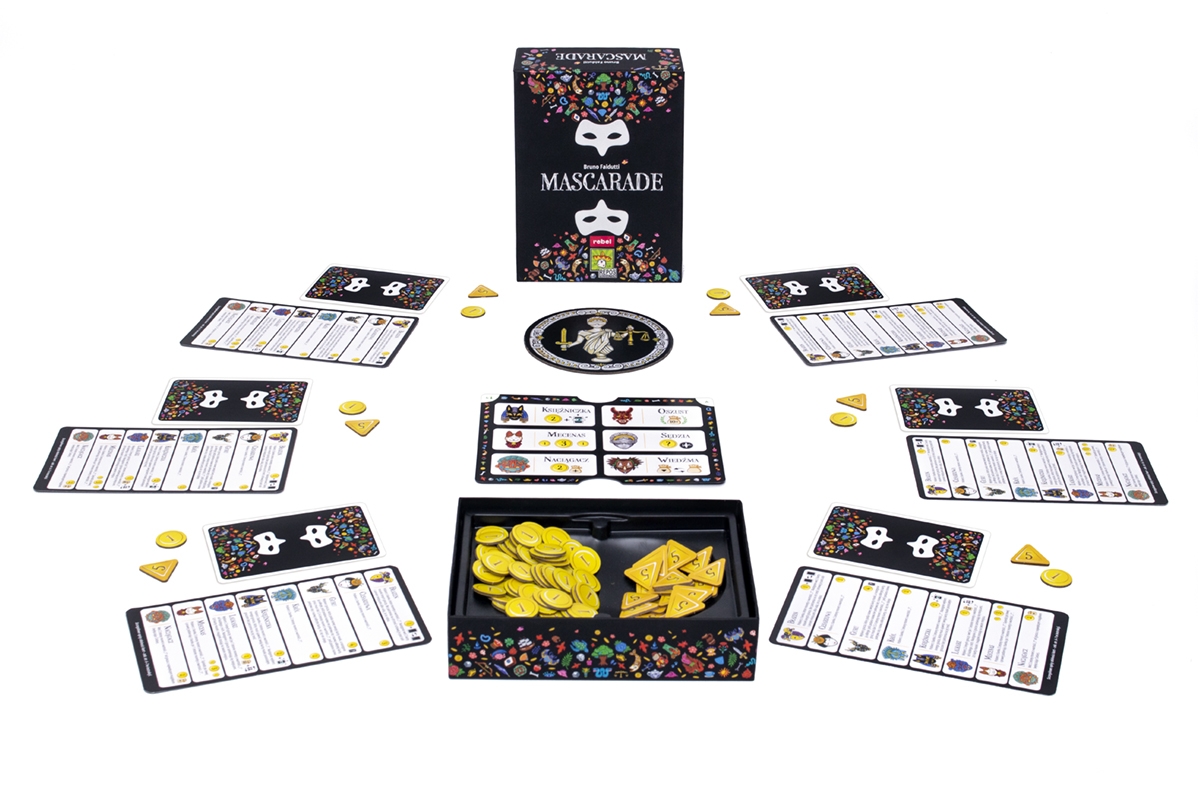 Mascarade to nowa edycja popularnej gry imprezowej, w której każdy skrywa prawdziwą twarz, a my musimy wydedukować, kto mówi prawdę, a kto blefuje. Celem gry jest zebranie żetonów monet o wartości 13 punktów. Aby je zgromadzić, będziemy korzystali ze zdolności kart postaci: niekoniecznie tych, które mamy przed sobą. Pamiętajmy jednak, że każdy blef niesie za sobą ryzyko zdemaskowania, a tym samym utraty cennych monet!