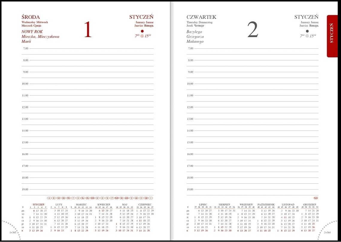 - przejrzysty układ graficzny kalendarium