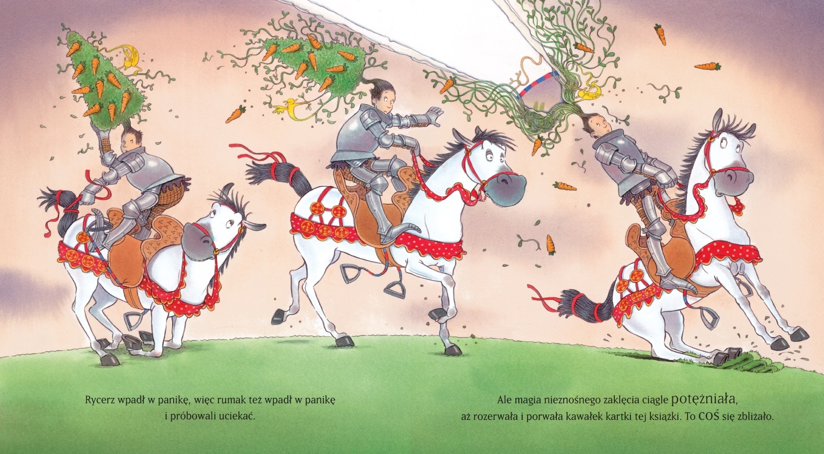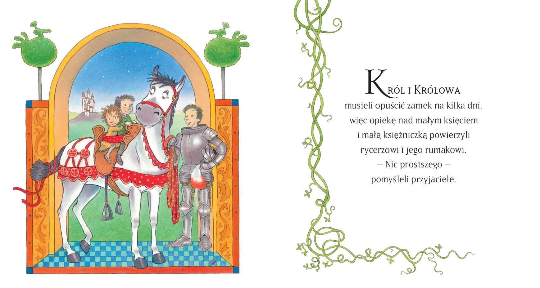 Dzielny rycerz i jego wierny rumak tym razem mają chyba najtrudniejszą misję: pod nieobecność pary królewskiej zaopiekować się małym księciem i małą księżniczką. Ale to takie męczące…